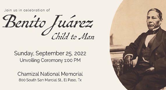 El parque Nacional El Chamizal contará con el primer monumento, sexto en los Estados Unidos, en honor al ex presidente de México Benito Pablo Juárez García quien gobernó ese país durante el periodo de 1857 a 1872, dieron conocer directivos de la organización cultural 12 viajeros (12 Travelers Memorial of the southwest) durante la develación de las primeras maquetas.