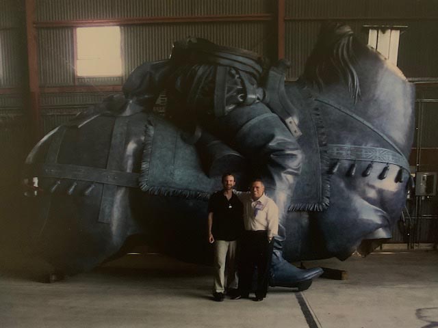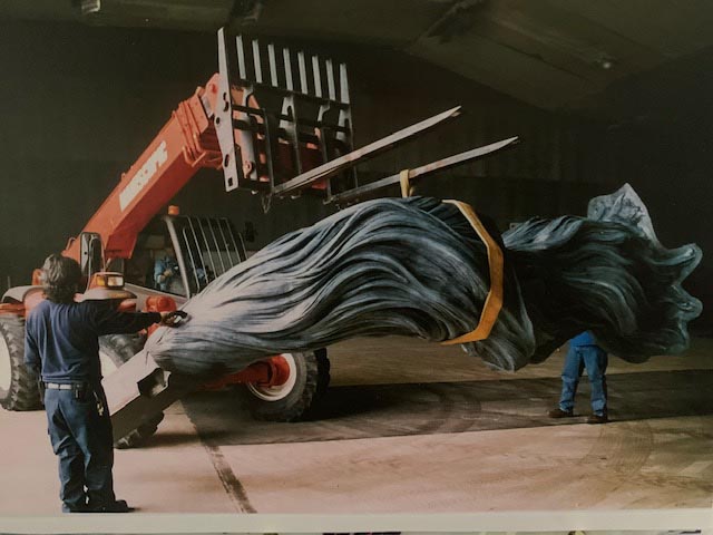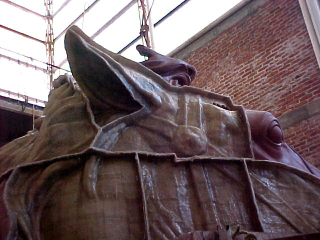 In January 2002, there was a New York Times front page article on the project with a photo of John astride the massive monument in resin! We were elated—hoping this would help raise the final funds to complete the project. A documentary film maker, John Valadez, read the article and flew to Mexico City to discuss making a PBS documentary on the making of the monument. We were further elated and helped him and his team for the next 6 years with much enthusiasm.