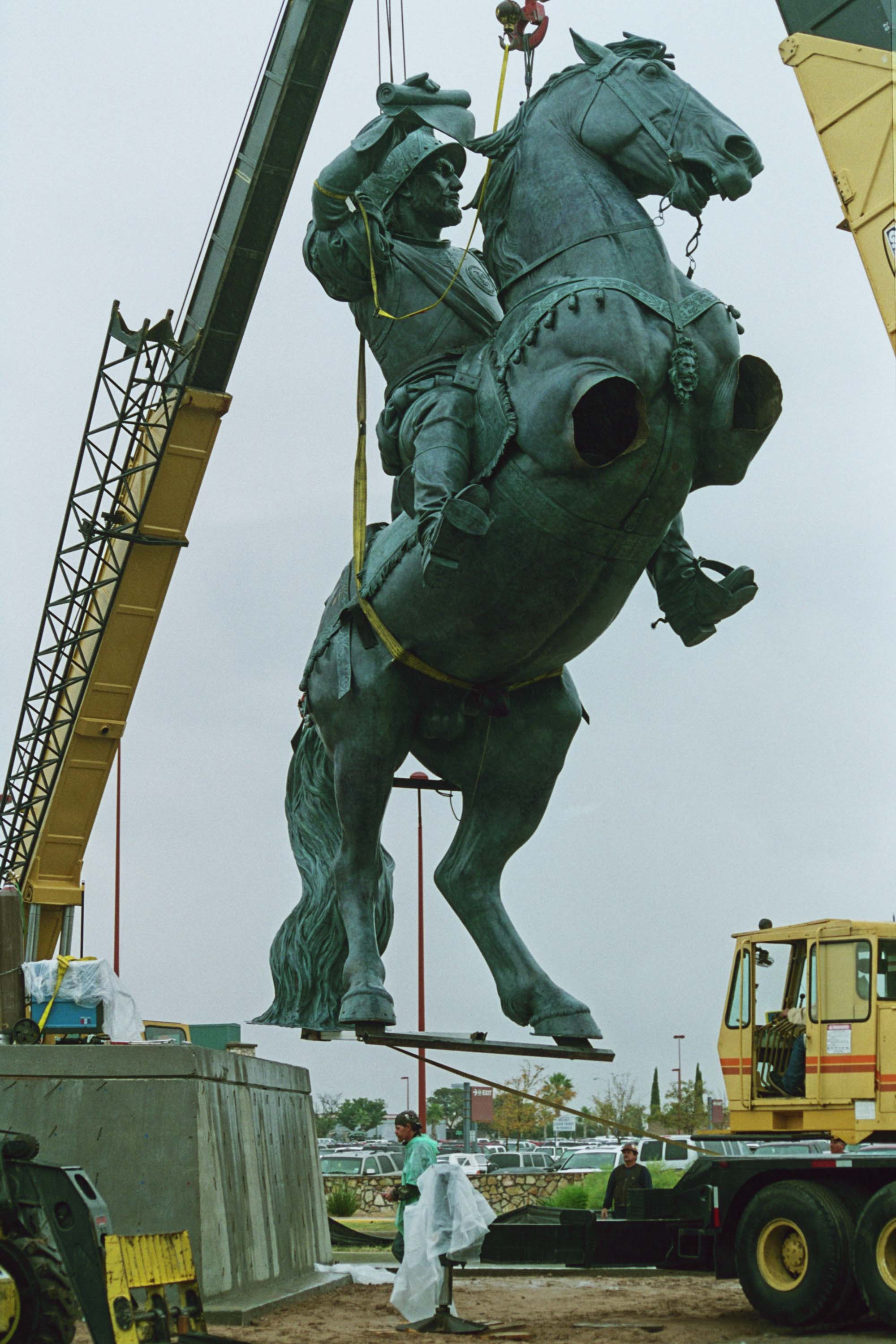 The 36 foot monument was created for 6 years in a Mexico City Enlarging studio by the sculptors and a crew of 5 master craftsmen. In 11 months (2003- 2004) approximately 300 molds were sent in 17 shipments to Shidoni, Foundry in Tesuque, New Mexico. In February of 2006, large flat bed trucks transported the cast sections to Eagle Bronze Foundry in Lander, Wyoming for final assembly. The monument arrived in El Paso for storage in an El Paso airport hanger on April 28, 2006 to await the completion of the base. Installation was in September of 2006 and the international dedication took place on April 21, 2007.