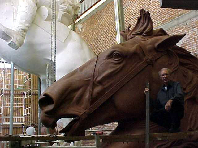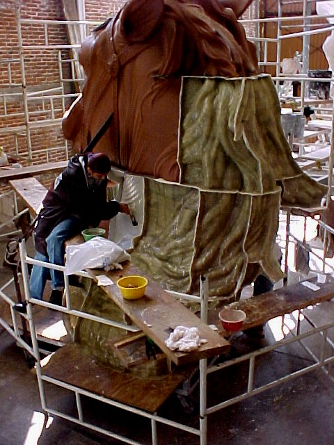 In January 2002, there was a New York Times front page article on the project with a photo of John astride the massive monument in resin! We were elated—hoping this would help raise the final funds to complete the project. A documentary film maker, John Valadez, read the article and flew to Mexico City to discuss making a PBS documentary on the making of the monument. We were further elated and helped him and his team for the next 6 years with much enthusiasm.