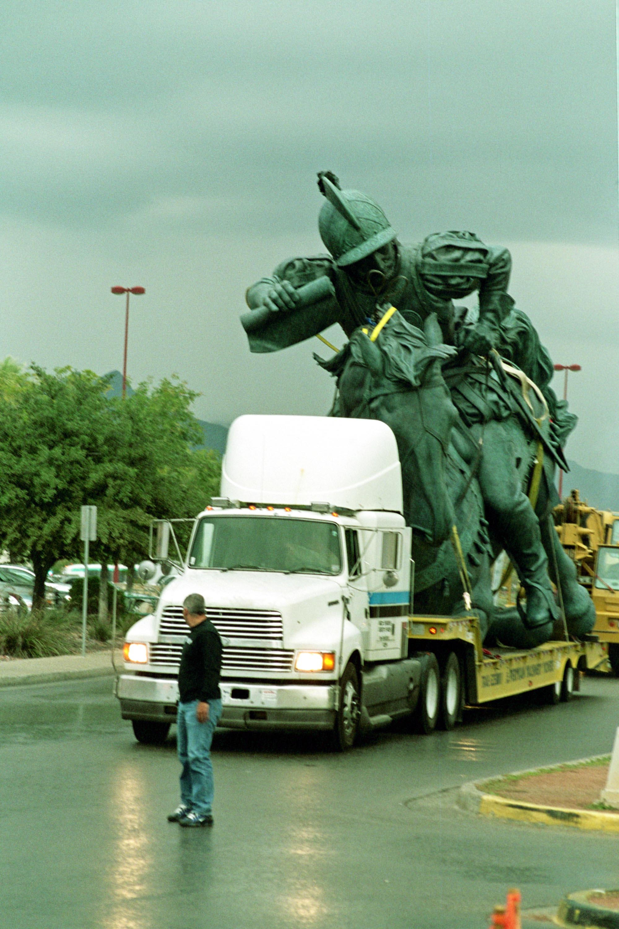 The 36 foot monument was created for 6 years in a Mexico City Enlarging studio by the sculptors and a crew of 5 master craftsmen. In 11 months (2003- 2004) approximately 300 molds were sent in 17 shipments to Shidoni, Foundry in Tesuque, New Mexico. In February of 2006, large flat bed trucks transported the cast sections to Eagle Bronze Foundry in Lander, Wyoming for final assembly. The monument arrived in El Paso for storage in an El Paso airport hanger on April 28, 2006 to await the completion of the base. Installation was in September of 2006 and the international dedication took place on April 21, 2007.
